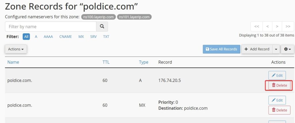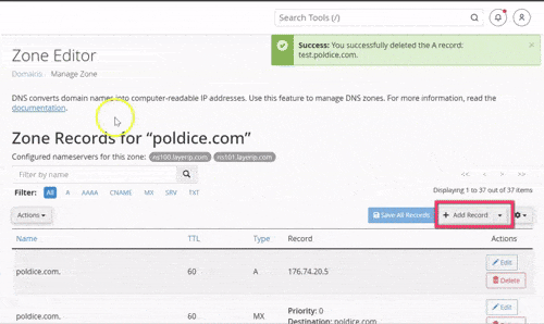 Deleting a DNS Record