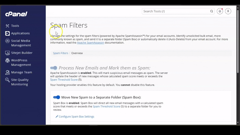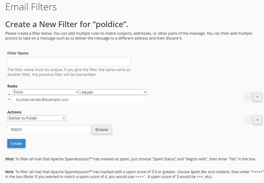 This guide walks you through the process using Spam Filters (SpamAssassin) and Email Filters in cPanel to mark specific email addresses or domains as safe, ensuring their messages bypass spam filters and are delivered directly to your inbox.