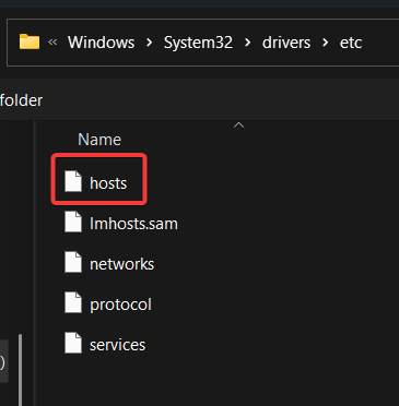 - Select “hosts” and click Open