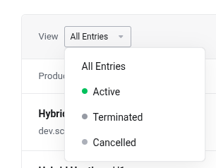 If you have a lot of services, you can filter the services by status (e.g. Active, Suspended, Cancelled) by either selecting the status from the View menu at the top of the table, or on the left-hand side.