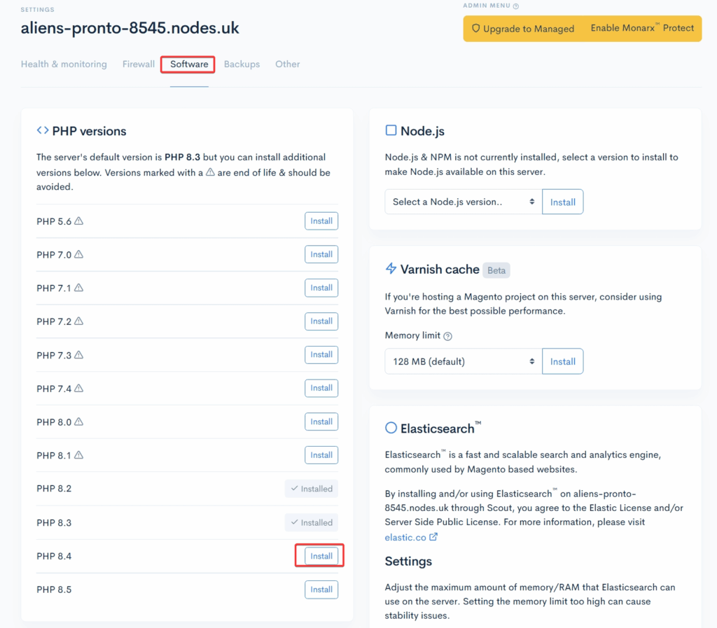 Scout allows you to manage the PHP version used by your websites. This is useful when upgrading to newer versions for performance and security, or when specific applications require a particular PHP release. The process is straightforward and can be completed directly from the Jolt Control Panel.