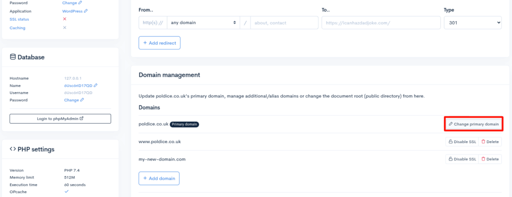 - Click Change primary domain.