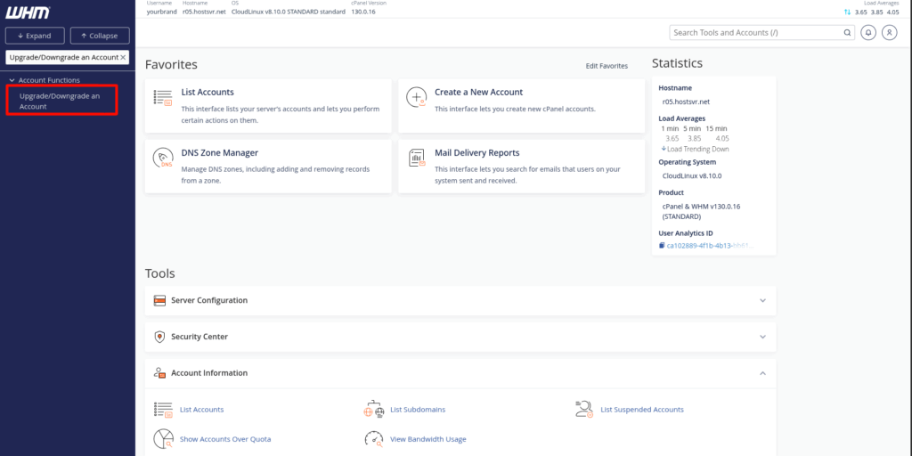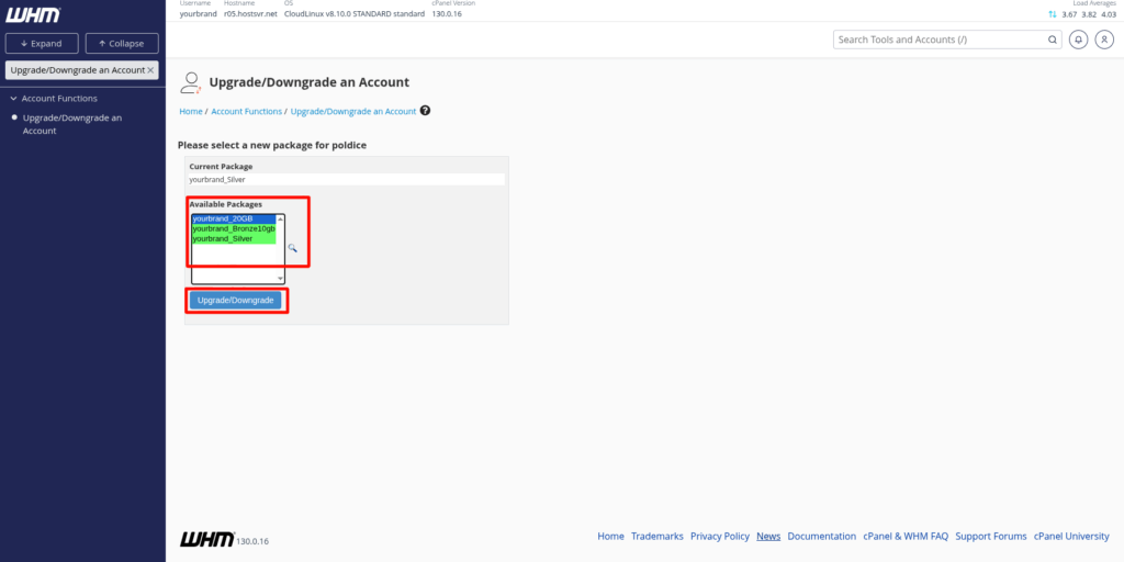 Upgrading/Downgrading a cPanel account